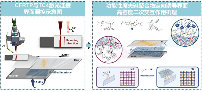 近日,校區(qū)材料科學(xué)與工程學(xué)院檀財(cái)旺教授團(tuán)隊(duì)在金屬與熱塑性復(fù)合材料激光焊接領(lǐng)域取得重要研究進(jìn)展,提出了一種通過(guò)化學(xué)合成功能性高分子結(jié)構(gòu)定向誘導(dǎo)高密度二次交互作用的界面調(diào)控手段,實(shí)現(xiàn)焊接接頭強(qiáng)度顯著提升。相關(guān)成果以《功能性席夫堿聚合物定向誘導(dǎo)高密度二次交互作用提升TC4/CFRTP激光連接接頭可靠性》(Directionally induced high-density secondary interaction for enhancing the bonding reliability of titanium alloy and CFRTP via functional Schiff base-contained polymer)為題發(fā)表在復(fù)合材料領(lǐng)域頂刊《Composites Part B: Engineering》(中科院1區(qū)TOP期刊,影響因子13.1)上。校區(qū)春雁英才計(jì)劃入選者博士研究生蘇健暉為第一作者,檀財(cái)旺教授、宋曉國(guó)教授為論文通訊作者。該項(xiàng)目得到了國(guó)家自然科學(xué)基金、山東省優(yōu)青、哈工大青年拔尖人才、中車研究院等基金的資助。